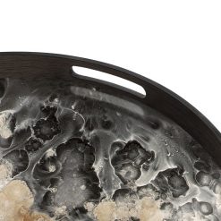 Plateau Ethnicraft en verre et en bois.