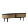 Conçu par Jonas Søndergaard, il présente des lignes épurées et des matériaux durables, tels que le chêne massif et le textile 100 % recyclé. Avec ses portes tambour coulissantes, ce meuble permet d’exposer vos appareils tout en offrant un espace de rangement discret.