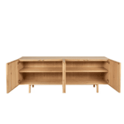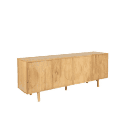 Découvrez ce meuble bas en chêne naturel, une fusion captivante d’originalité et de fonctionnalité. Avec ses 4 portes élégantes ornées de formes géométriques arrondies, ce meuble offre une esthétique contemporaine qui attire tous les regards.