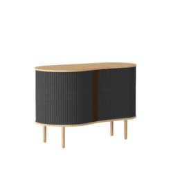 Conçu par le designer Jonas Søndergaard, ce meuble en chêne se distingue par ses portes tambour coulissantes, offrant un accès pratique à son espace de rangement tout en préservant une esthétique épurée.