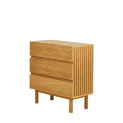En MDF plaqué et chêne massif, elle apporte chaleur et intemporalité. Inspirées du style Japandi, ses striures délicates créent une esthétique équilibrée. Avec une largeur de 80 cm, elle s’adapte aux petits espaces, offrant un rangement pratique tout en ajoutant du style.