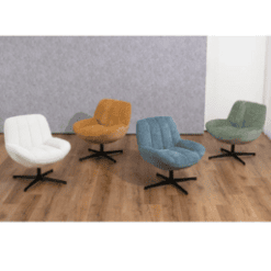 Découvrez le fauteuil R, un véritable bijou de confort et d’élégance. Avec son revêtement en tissu velours disponible en plusieurs coloris tendance, dont le blanc, le bleu, le vert et le safran, ce fauteuil pivotant s’intègre parfaitement dans tous les intérieurs.