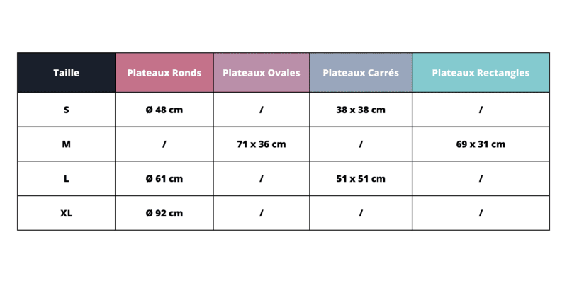 Nous vous proposons une aide pour accorder la taille de vos plateaux aux structures proposées.