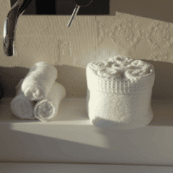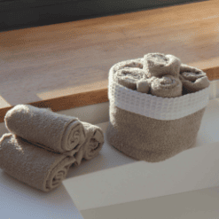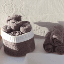 Panier invité fanny, est un lot de 6 serviettes à main 30×30, 100% coton éponge. Ce panier est très joli dans la salle de bain et très pratique. A adopter d’urgence, et à offrir sans modération. Lavage à 60° en machine, et passe au sèche linge. Plusieurs couleurs sont disponibles. On devient vite accro tellement c’est pratique de toujours avoir une petite serviette sous la main et la présentation est idéale, le panier ne prend pas de place sur le bord de la vasque.
