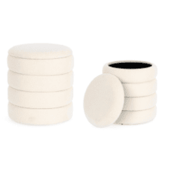 Ajoutez une touche de confort et de style à votre intérieur avec le pouf K. Avec son design moderne et son revêtement en boucle, ce pouf est non seulement élégant, mais il offre également un espace de rangement pratique.