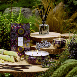 Parfum : Aromatique, la Santiago Huckleberry s’ouvre sur une tonalité fruitée avec des baies acidulées, de la vanille et de la canne à sucre. Imaginé avec l’image d’une confiture, vous retrouverez son parfum dans ces bougies ou déclinaisons.