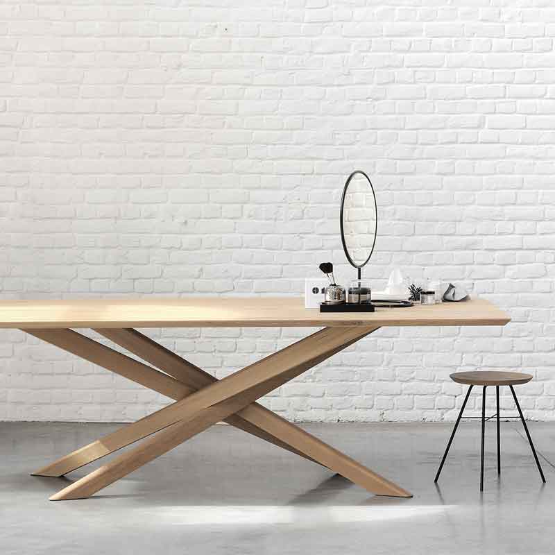 La table Mikado d’Ethnicraft est fabriquée en chêne massif.